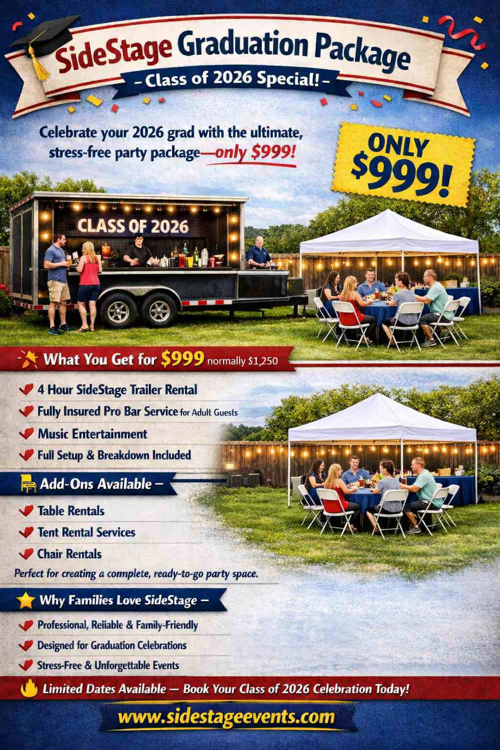 PACKAGES Sidestage events provides the greater western new York area with a fun and unique event experience. we bring the party to you! TO VIEW OUR FULL PRICING GUIDE, PLEASE CLICK THE “SEE ALL” BUTTON.